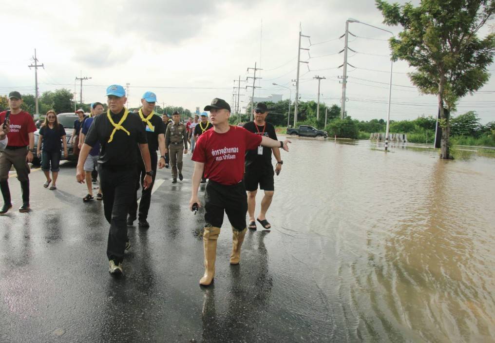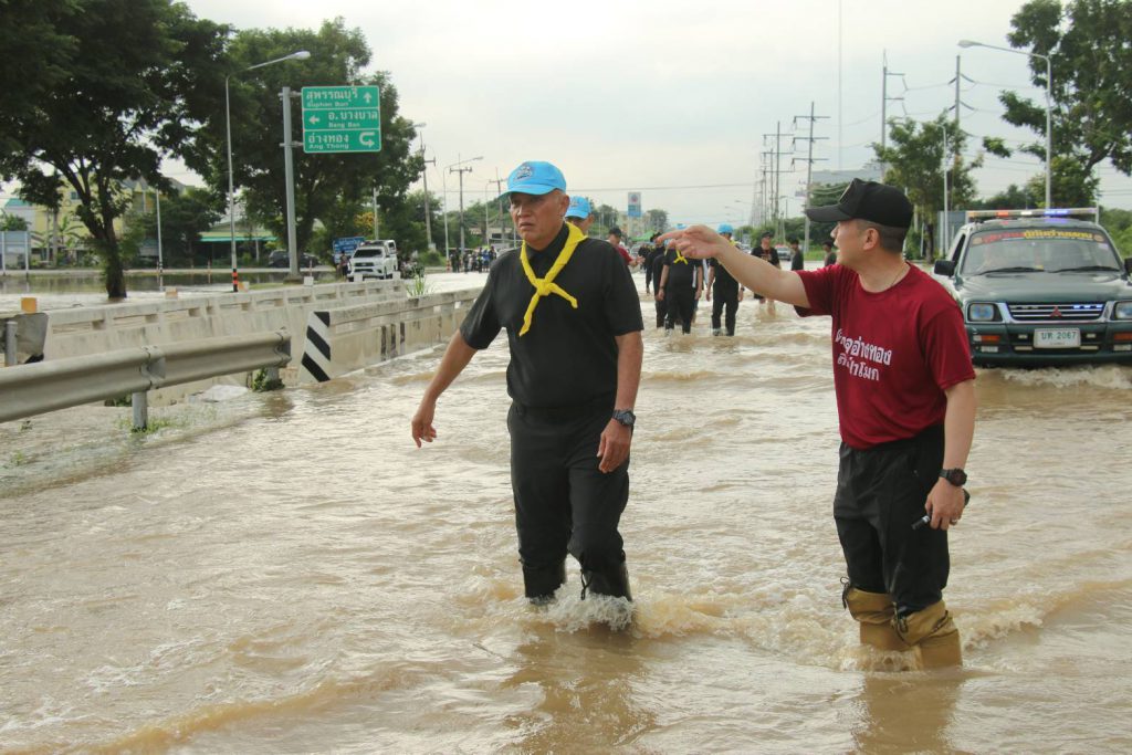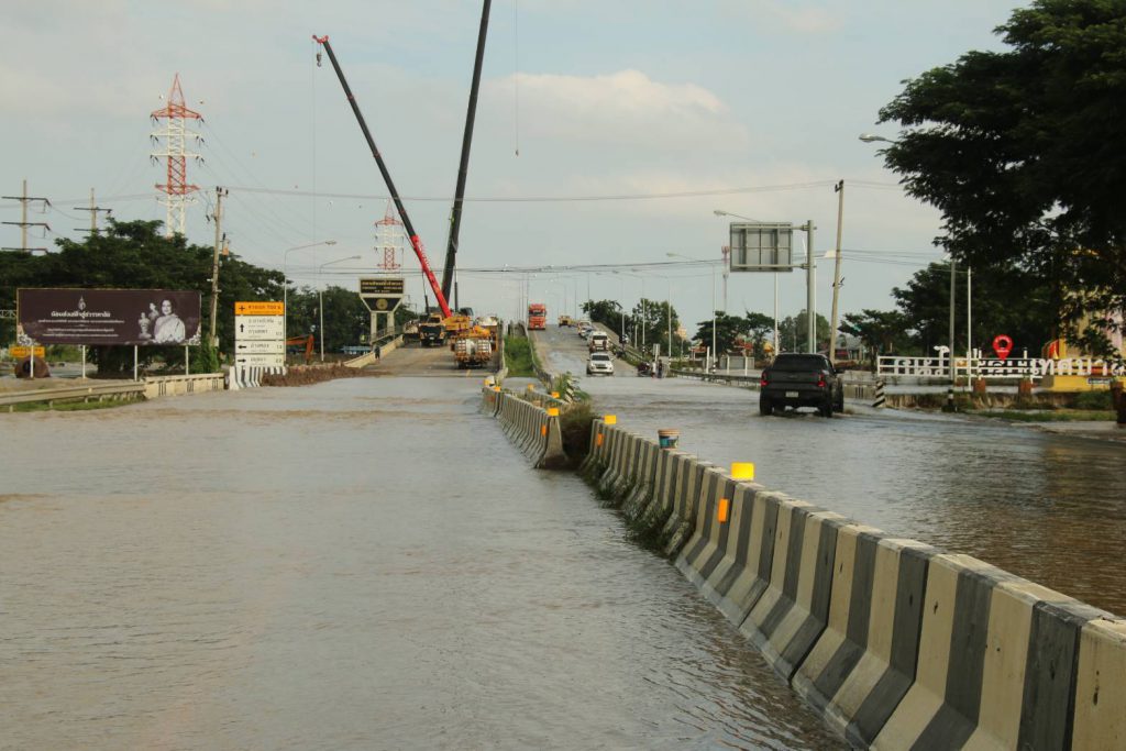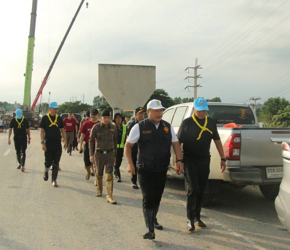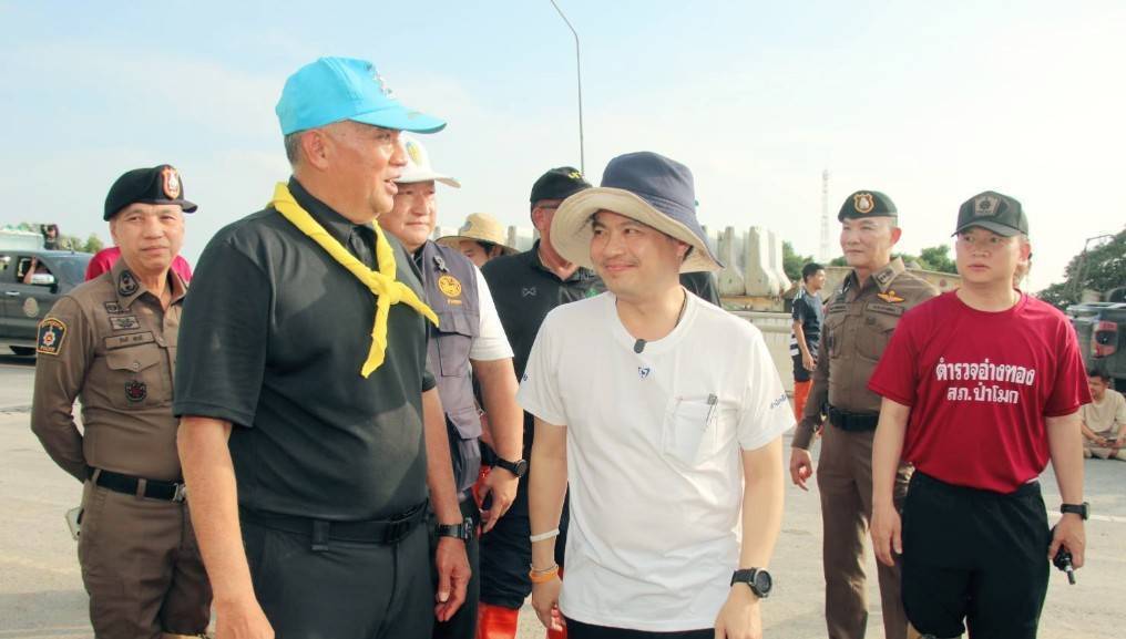 เดินทางมาตรวจติดตามสถานการณ์อุทกภัย บริเวณจุดกลับรถใต้สะพานป่าโมกสะพานข้ามแม่น้ำเจ้าพระยา เป็นเหตุให้น้ำท่วมบริเวณถนนเส้น 33 สุพรรณบุรี-อ่างทอง บริเวณช่วงก่อนขึ้นสะพานทั้งสองฝั่งระยะทางยาวประมาณ 150 เมตร ในพื้นที่ สภ.ป่าโมก จ.อ่างทอง
