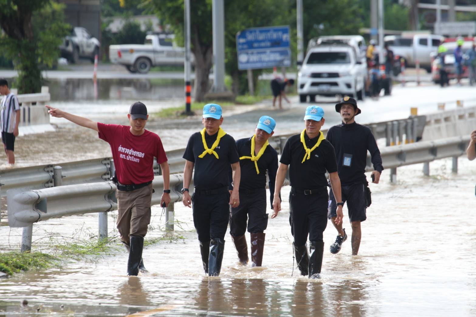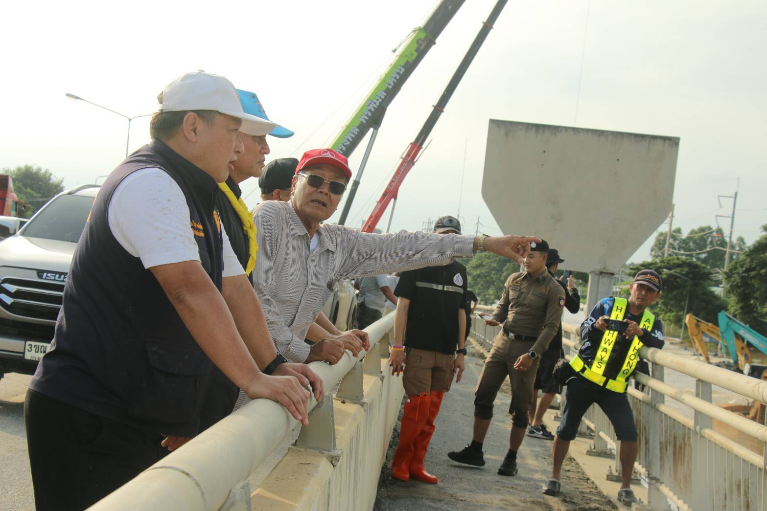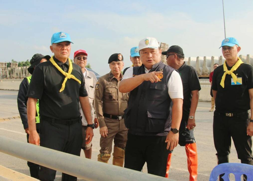 เดินทางมาตรวจติดตามสถานการณ์อุทกภัย บริเวณจุดกลับรถใต้สะพานป่าโมกสะพานข้ามแม่น้ำเจ้าพระยา เป็นเหตุให้น้ำท่วมบริเวณถนนเส้น 33 สุพรรณบุรี-อ่างทอง บริเวณช่วงก่อนขึ้นสะพานทั้งสองฝั่งระยะทางยาวประมาณ 150 เมตร ในพื้นที่ สภ.ป่าโมก จ.อ่างทอง