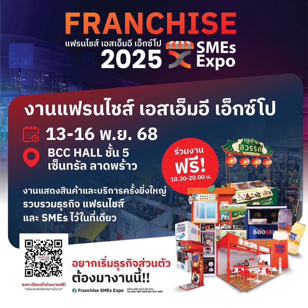 “แฟรนไชส์ เอสเอ็มอี เอ็กซ์โป 2025” รวมธุรกิจแฟรนไชส์กว่า 100 แบรนด์ มาครบจบที่เดียว เซ็นทรัล ลาดพร้าว. 13-16 พ.ย.