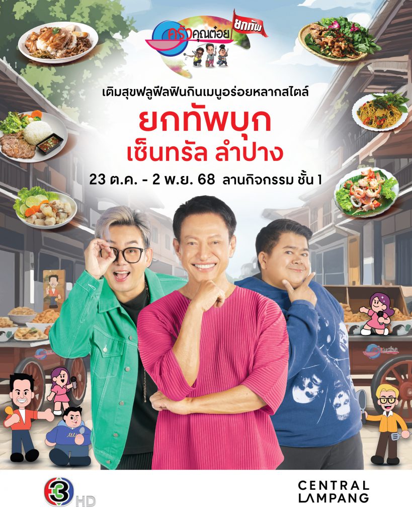 พบกับ “ครัวคุณต๋อยยกทัพบุก เซ็นทรัล ลำปาง” ณ ศูนย์การค้าเซ็นทรัล ลำปาง บริเวณลานกิจกรรม ชั้น 1 วันที่ 23 ตุลาคม – 2 พฤศจิกายน 2568