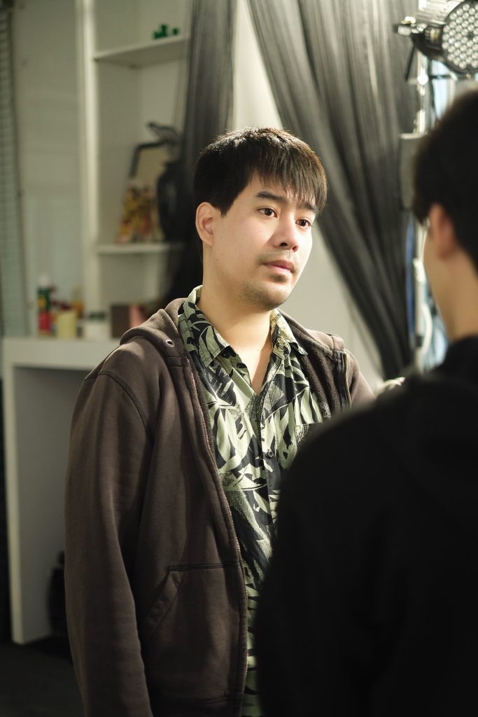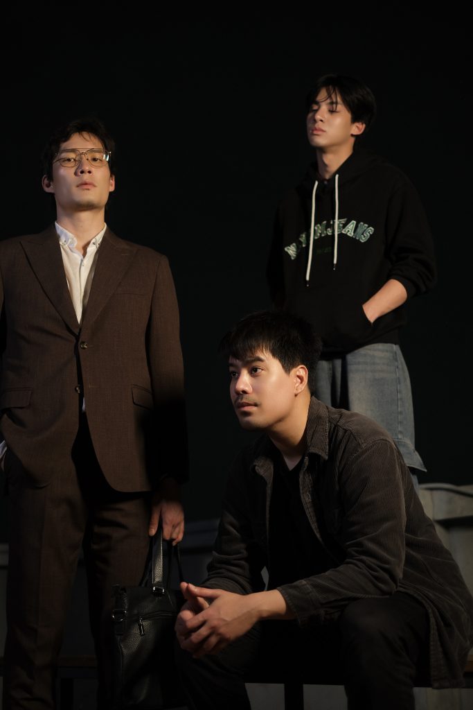 ได้กลับมาร่วมงานกับ “พี่โบกัส” (ผศ.สุธิดา สิงหราช) ผู้กำกับฯ อีกครั้ง ก็รู้สึกดีใจมากครับ พี่โบเป็นคนที่สุขุม มีความใจเย็น ช่างสังเกตและมีความละเอียดสูงมาก พี่โบได้ให้พื้นที่ในการทดลองและค้นหาตัวละครอย่างอิสระ ทำให้เอ็มได้ค้นพบด้านใหม่ๆ ของตัวละครมากขึ้น ส่วนเพื่อนนักแสดง “วิน” (ภวัต สิริธีรภัคกุล) และ “พรีม” (พีรทัต พรมเทศ) เป็นแรงพยุงที่สำคัญ และเป็นหัวใจของกระบวนการทั้งหมดเลยครับ เพราะเราต่างคนต่างฟังกันจริงๆ ซัพพอร์ทกันจริงๆ แถมยังช่วยกันสร้างบรรยากาศที่ปลอดภัยให้ทุกคนกล้าที่จะซื่อสัตย์กับการแสดงของตนเอง ในทุกครั้งที่ซ้อมจะรู้สึกได้เลยว่าพลังของการรับ-ส่งในการแสดงนั้นจริงใจและปลอดภัยมาก